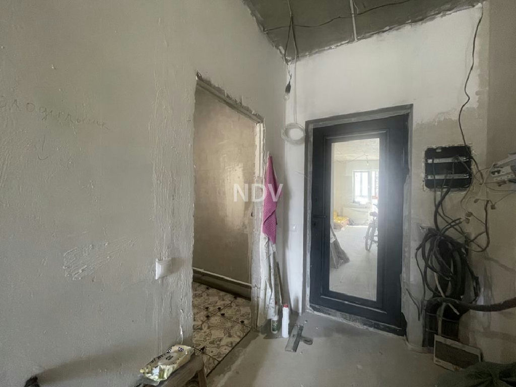 Ремонт уже начат: стены оштукатурены, в санузле положена плитка, установлена новая входная дверь. Вам останется только воплотить свои дизайнерские идеи.