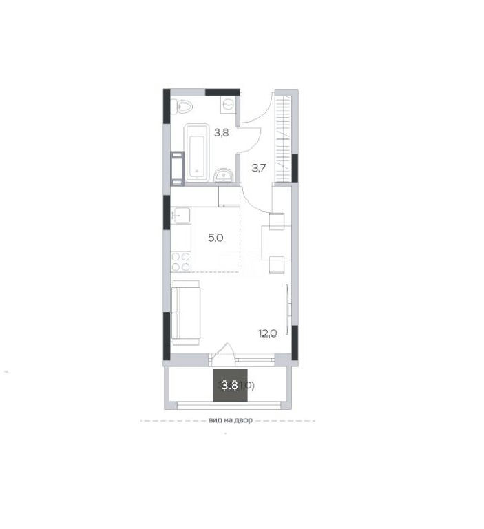 Общая площадь 26 м2, потолки 2,8 м ощущение свободы.